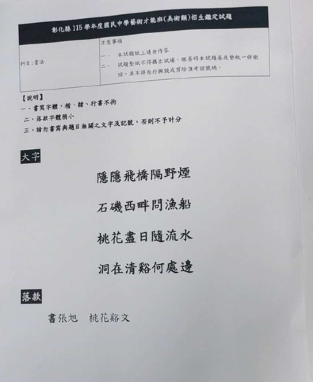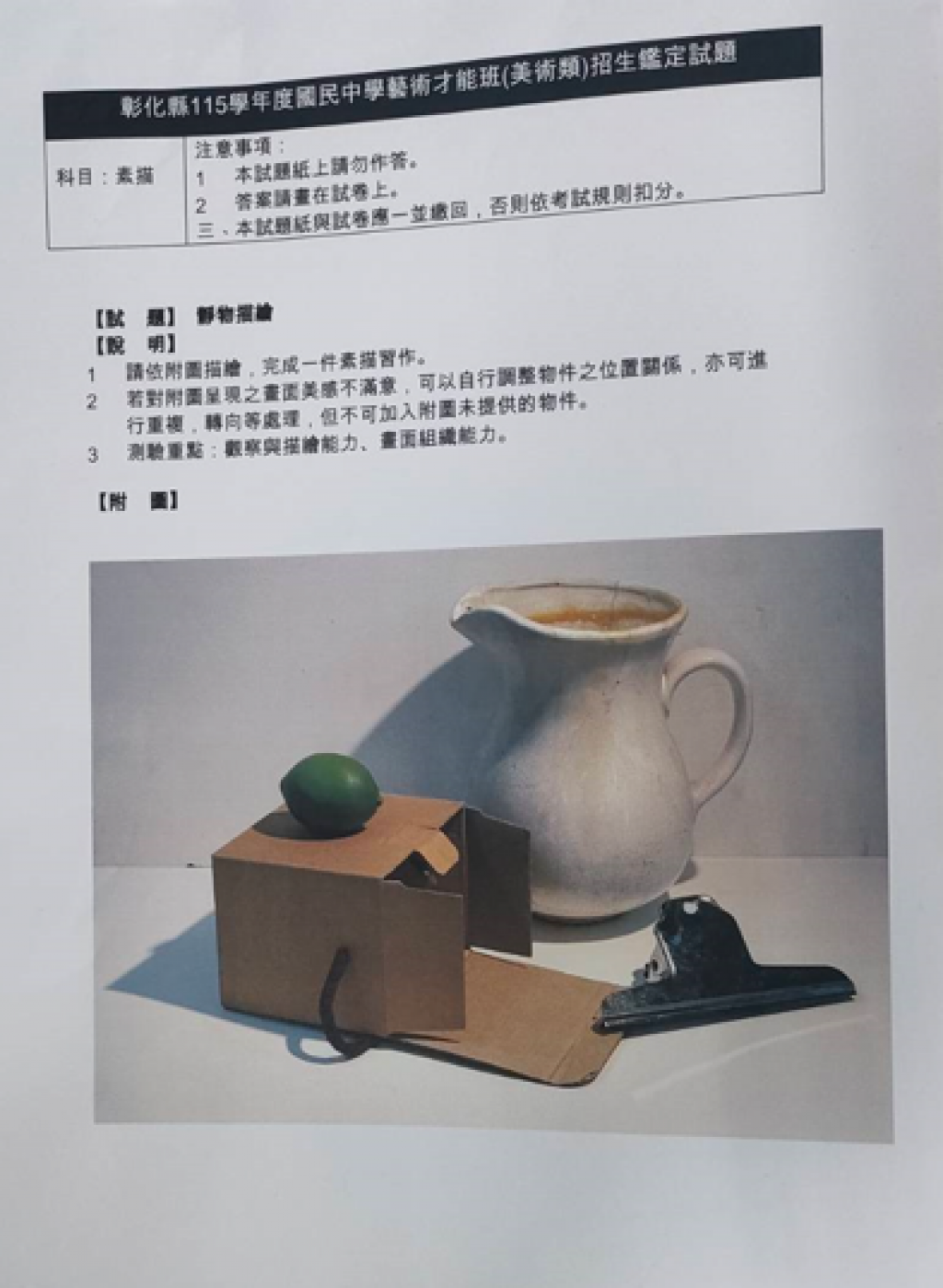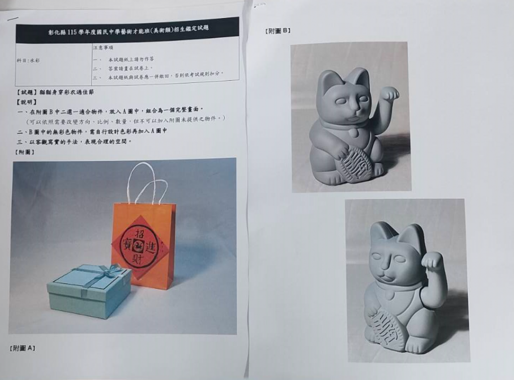 【藝才班招生成績公告】本校115學年度國民中學藝術才能班(美術類)新生術科測驗鑑定成績公告及考題,如附件